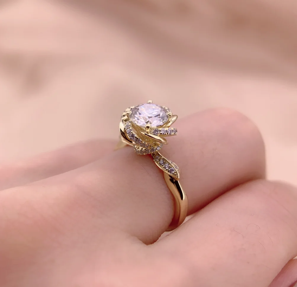 S925 Silver Round Shape Rotating petal Moissanite Ring Diamonds Lace